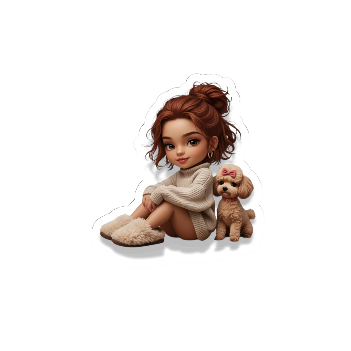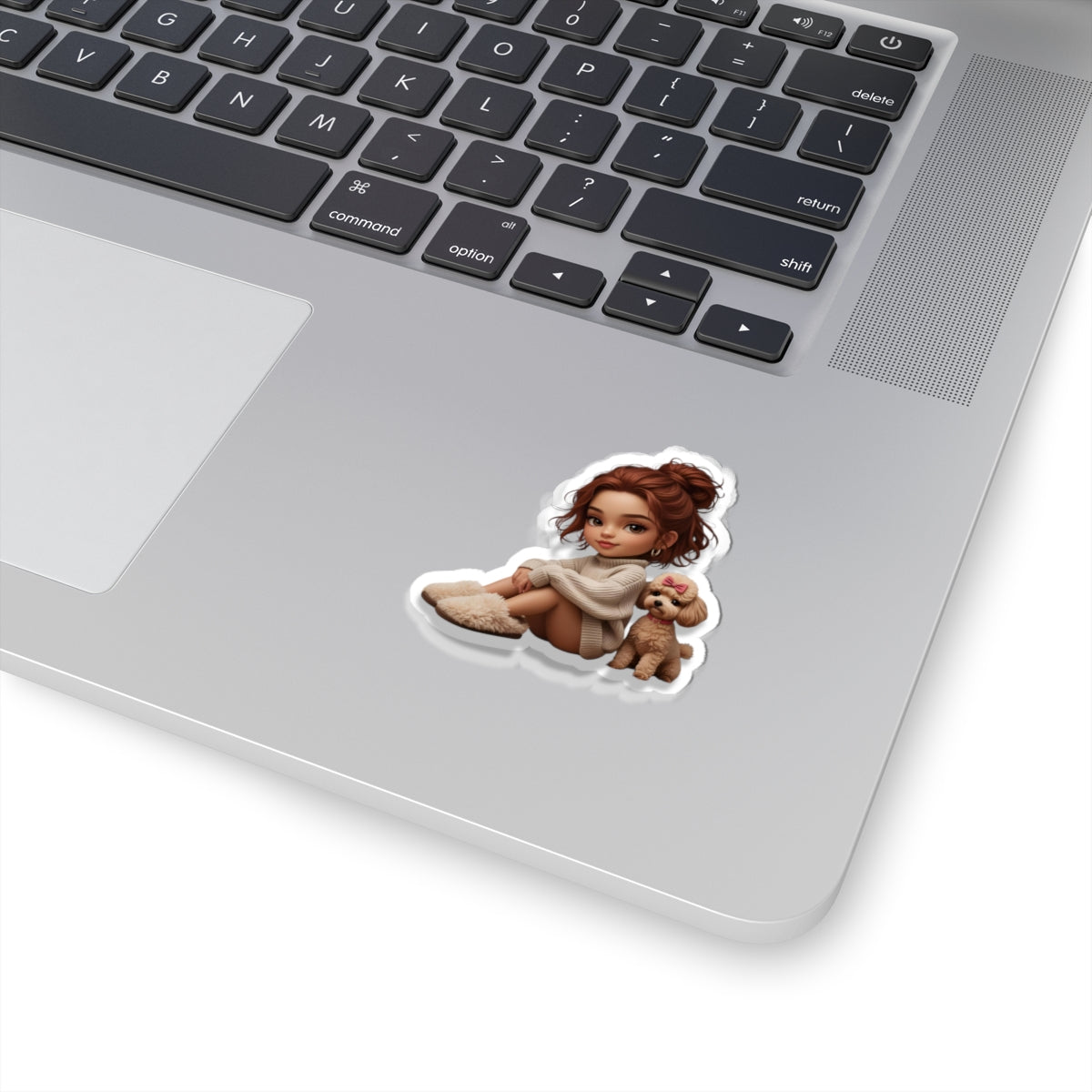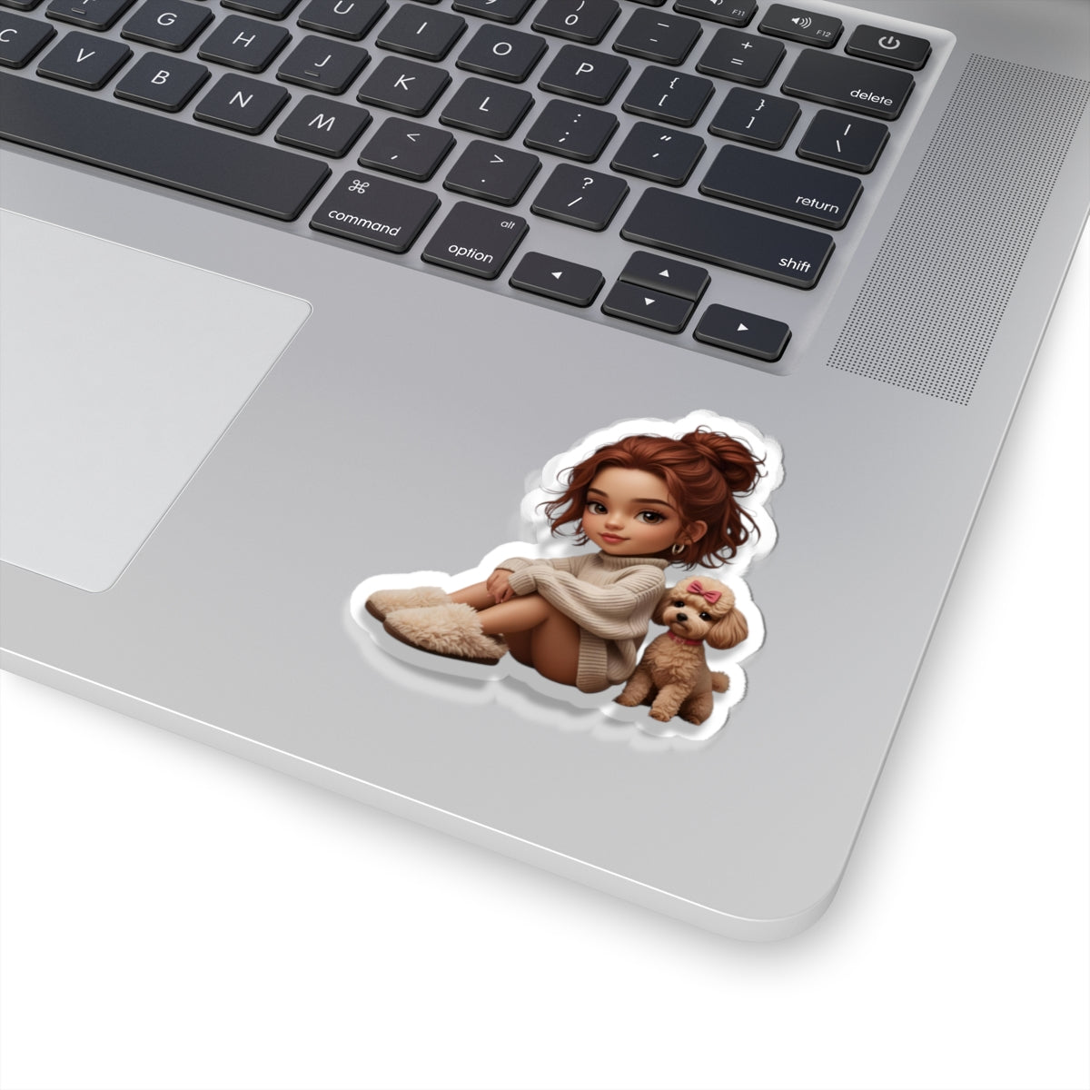 Charming Girl & Puppy Kiss-Cut Stickers, Cute Aesthetic Decor, Laptop Accessories, Gift for Pet Lovers, Art Stationery