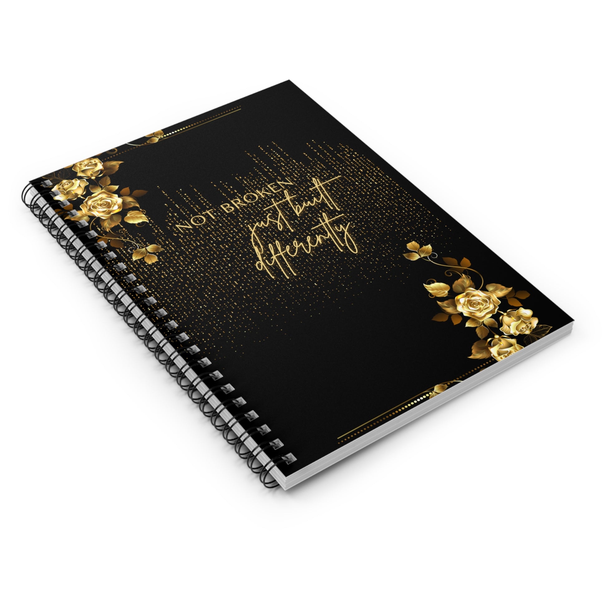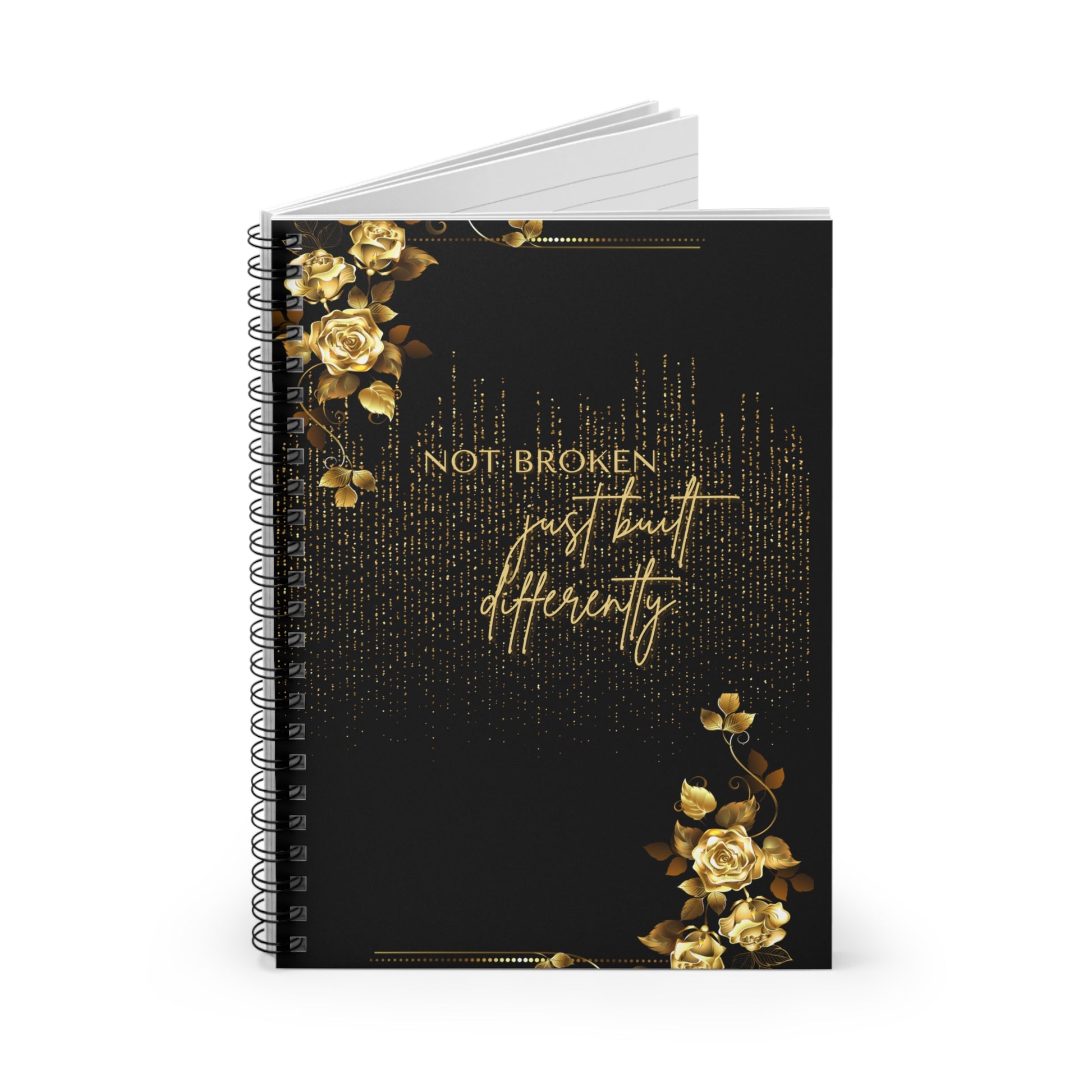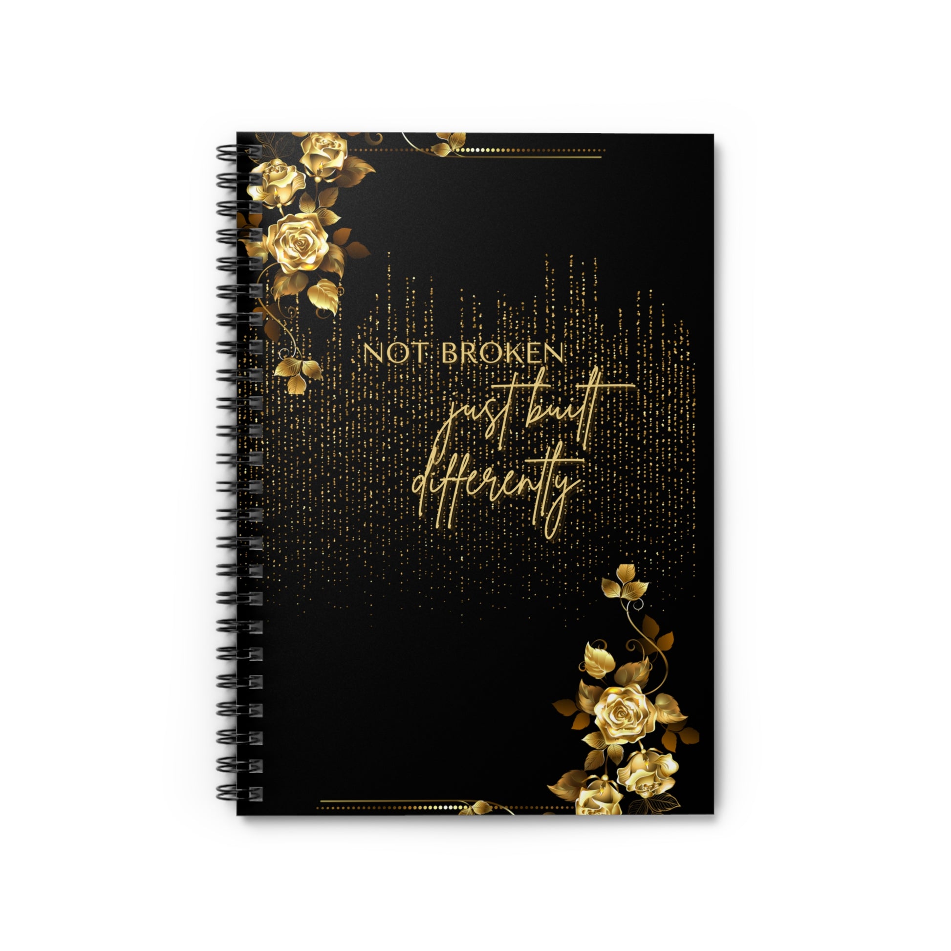 Elegant Inspirational Spiral Notebook - "Not Broken, Just Built Differently" - Perfect Gift for Students, Writers, and Creatives