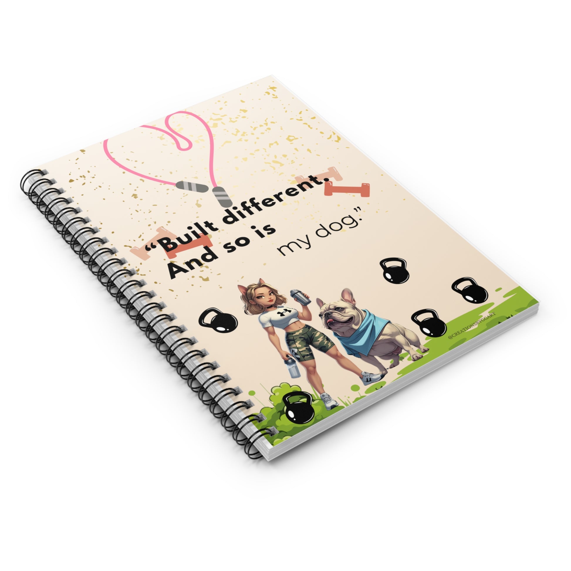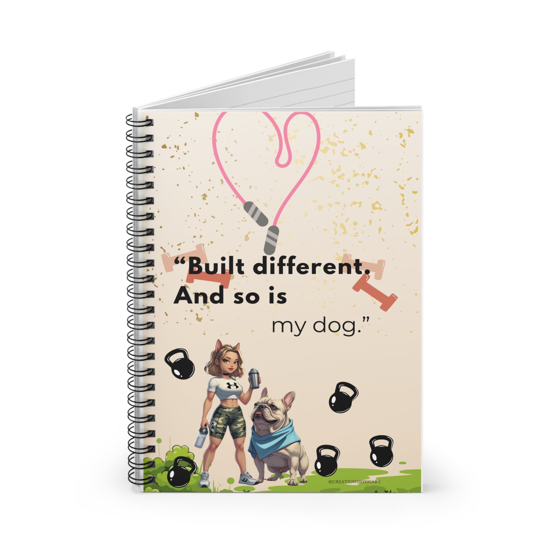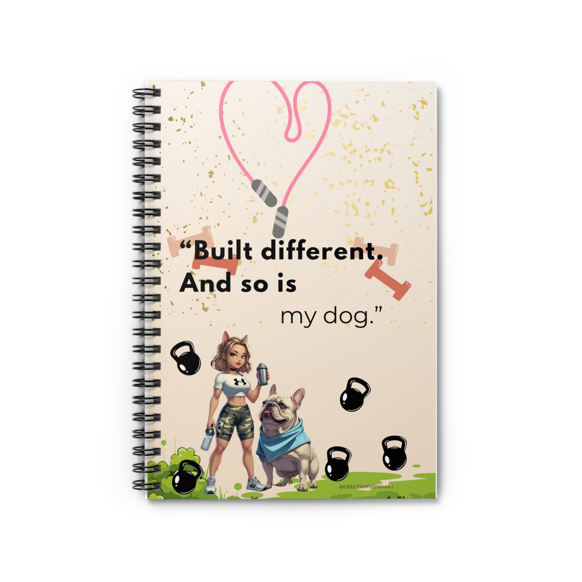 This vibrant spiral notebook blends charm and functionality, making it an essential companion for anyone looking to jot down notes, ideas, or creative thoughts. The playful design, featuring a fitness theme and a cute dog, evokes a sense of motivation and joy, perfect for gym enthusiasts or dog lovers alike. With its stylish metal spiral binding, it's both practical and chic, fitting seamlessly into your daily routine. Ideal for students, fitness fans, or anyone who loves to write, this notebook is a great gift for occasions like birthdays, holidays, or even back-to-school. Celebrate your love for fitness and furry friends with a notebook that inspires action!