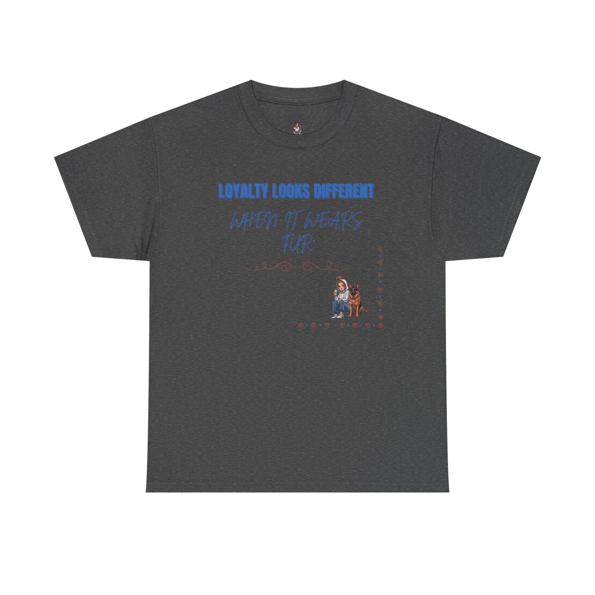 Introducing a classic Unisex Heavy Cotton Tee that embodies comfort and style. This tee features a heartfelt design that resonates with dog lovers and pet enthusiasts. It delivers a sense of warmth and loyalty, making it a perfect addition to any casual outfit. Whether lounging at home or meeting friends, this shirt adds a charming touch to your daily wear. Ideal for holidays like National Dog Day or any celebration that honors the bond between humans and their furry friends, it’s a thoughtful gift for pet owners.