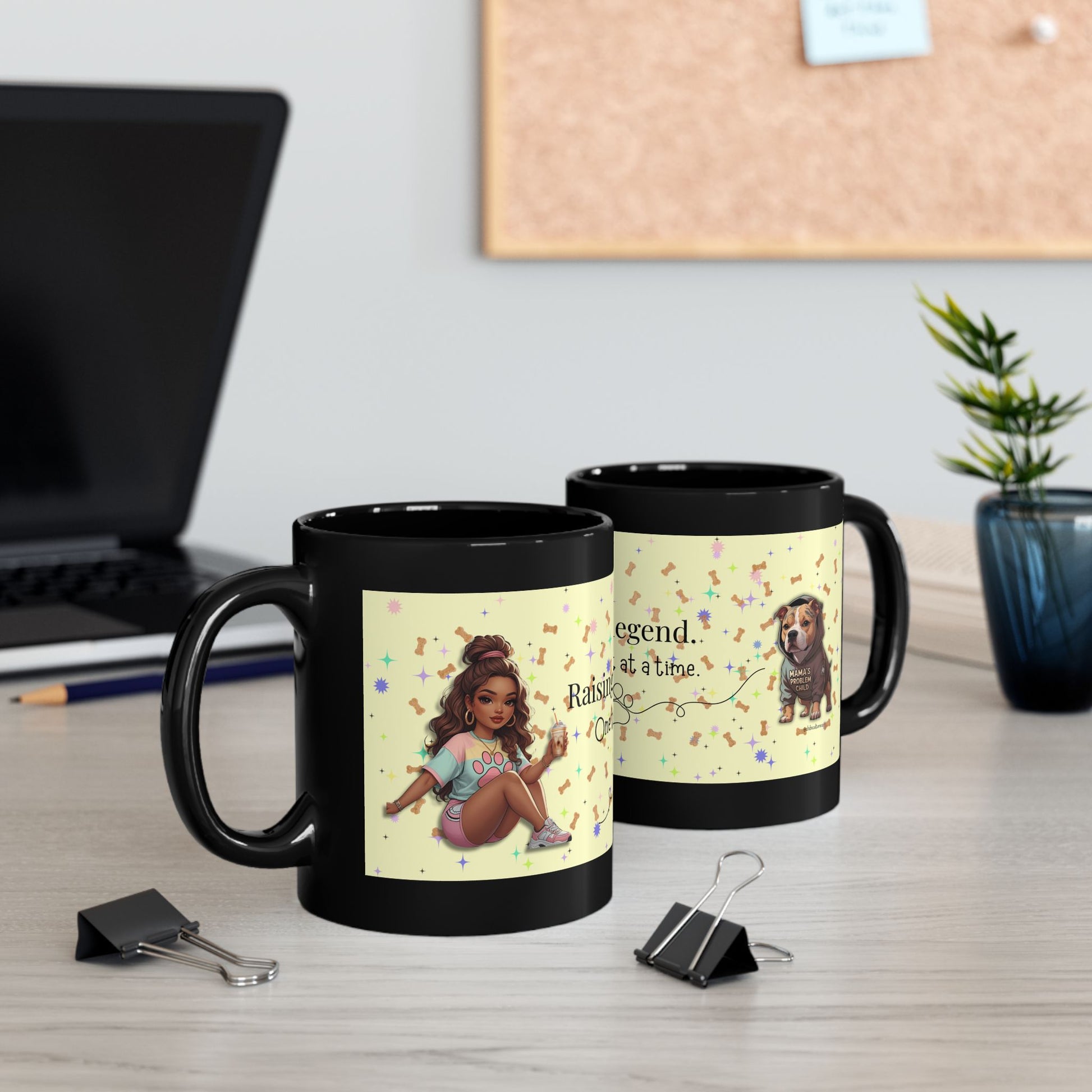 Mug, Chibi Pitbull Coffee Cup, Raising a Legend Mug, Funny Dog Mom Gift, Black Mug 11oz 15oz