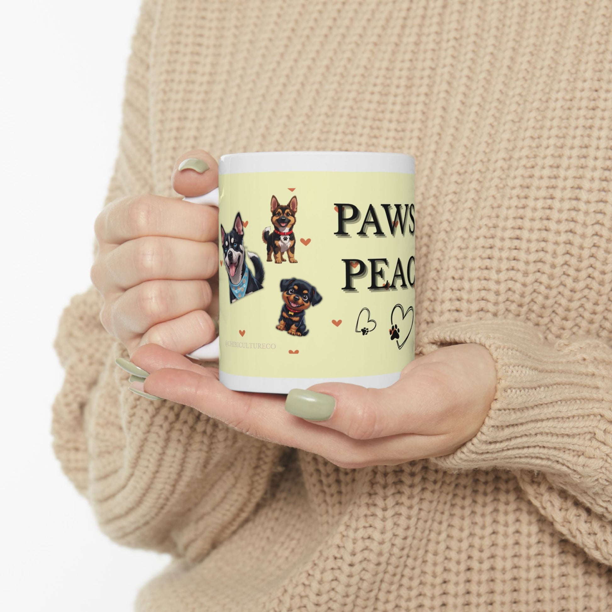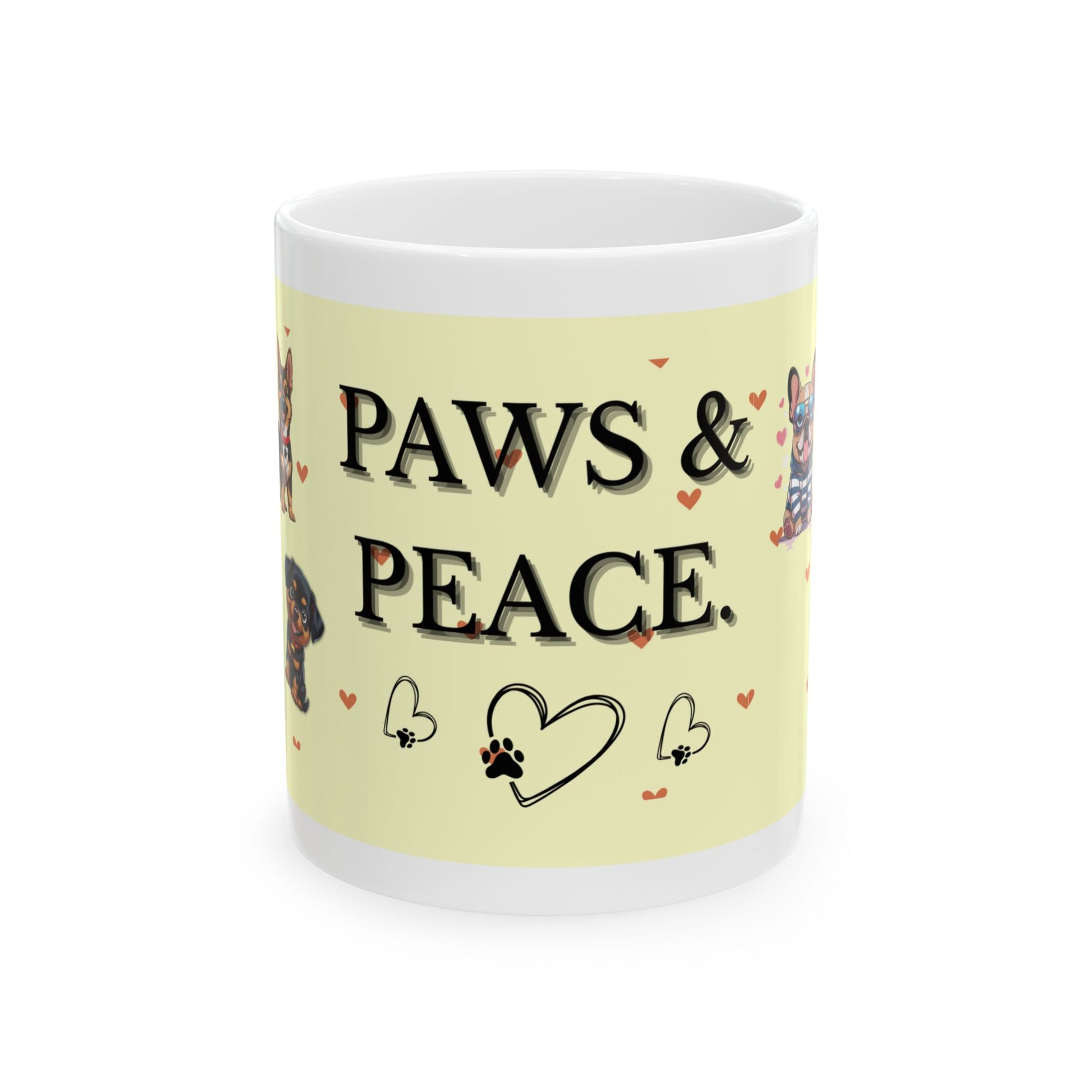 “Paws & Peace” Ceramic Mug – Cute Dog Lover Gift, 11oz Pet Coffee Cup